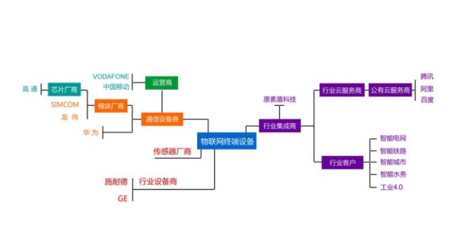 目前,人們習(xí)慣將物聯(lián)網(wǎng)分為“感知層”、“網(wǎng)絡(luò)層”、“應(yīng)用層”三個層面。其中感知層包括各類物聯(lián)網(wǎng)終端設(shè)備,如二維碼、RFID、各類傳感器等;網(wǎng)絡(luò)層包括2G、3G、4G以及有線網(wǎng)絡(luò)等;應(yīng)用層包括綠色農(nóng)業(yè)、公共安全、工業(yè)監(jiān)控、智能家庭、智能交通、智慧城市等應(yīng)用領(lǐng)域。但現(xiàn)實中,物聯(lián)網(wǎng)產(chǎn)業(yè)鏈的劃分往往不是那么的清晰,很多企業(yè)橫跨多個領(lǐng)域,彼此互有重合的部分,例如深圳原素盾科技,既是模塊廠商,又是設(shè)備制造商,同時業(yè)務(wù)也涉及到很多行業(yè)的系統(tǒng)集成。在這里,我們僅從感知層面和應(yīng)用層面展開討論。